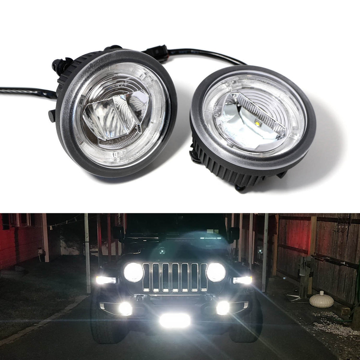 White 2 In 1 Cree Led Halo Drl Fog Driving Light Kit For 18 Up Jeep Wrangler Jl Ijdmtoy Com